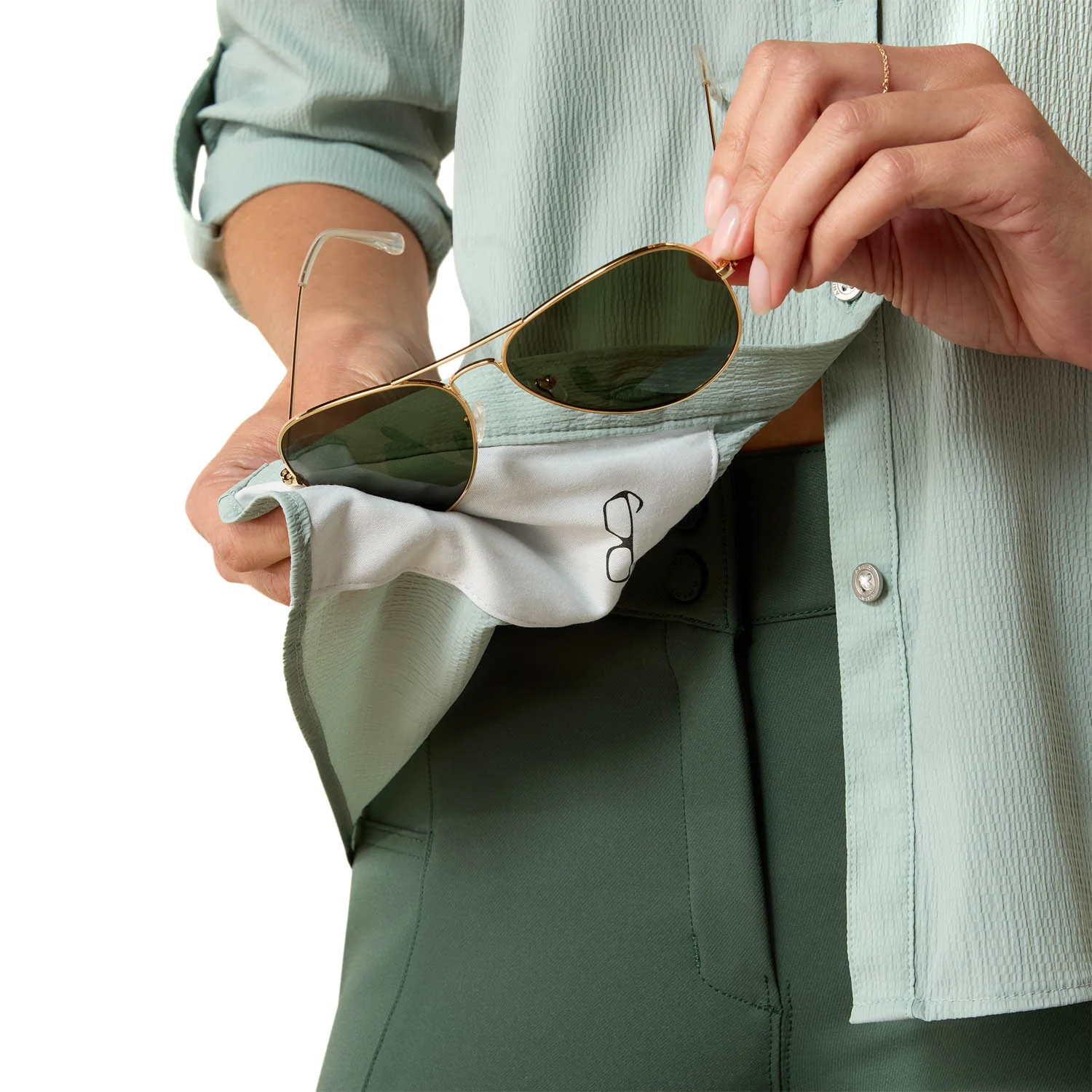 Designed with AriatTEK® fabric with built-in performance features that adapt to changing weather conditions. VentTEK mesh panels provide ventilation in key areas to help keep you cool and comfortable and Moisture Movement Technology™ helps wick moisture away from the skin to keep you dry. The Sun Protection Fabric™ helps block harmful UV rays, keeping you covered during long days riding or at the barn. Microfiber lens cloth is hidden in the hem for on-the-go cleaning for your phone or glasses.