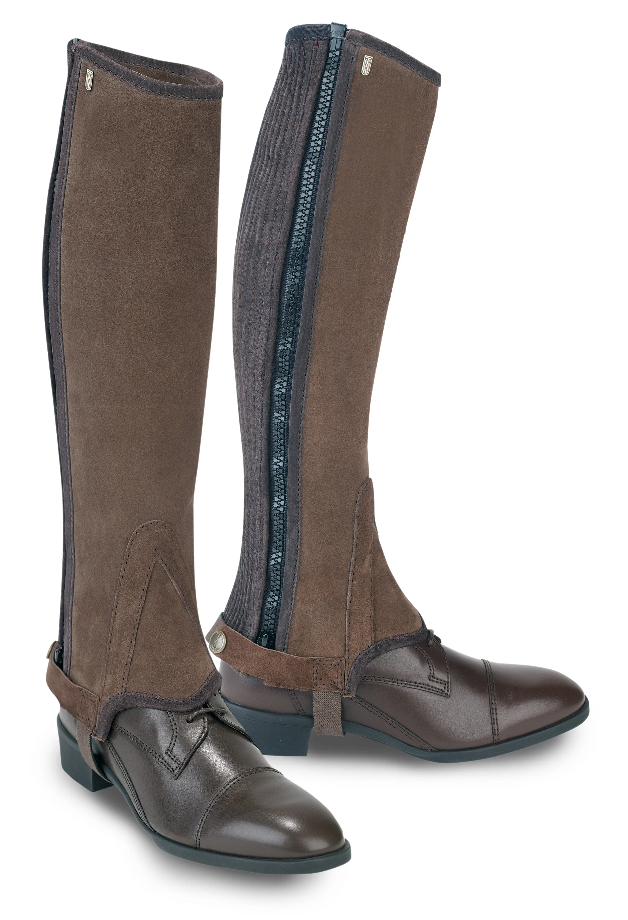 The original stretch suede half chaps from Tredstep Ireland™. A unique design and shape allow Tredstep Half Chaps to mold snugly to your leg for optimal comfort and performance. An elastic back panel provides just the right amount of give to ensure a precise fit. Full-length side zipper closes from the top down; snap closure at the bottom.